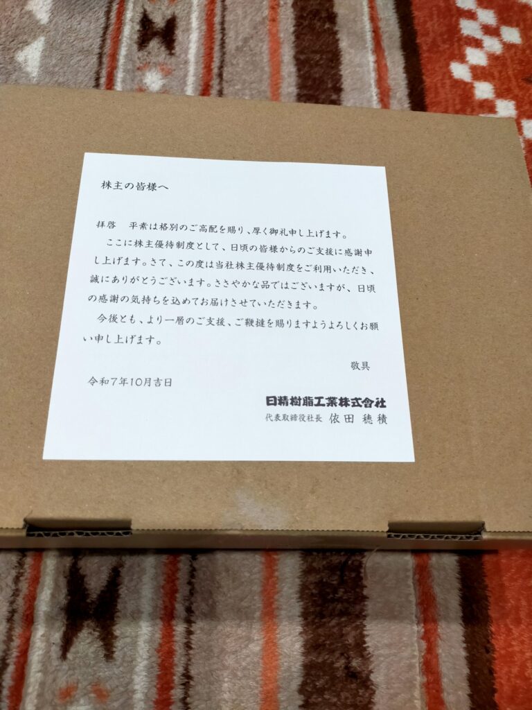 今年度の日精樹脂工業優待品ですが…(知らなかったとは言え)斜め上の優待品が届きました。